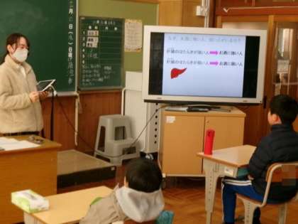 1207 5・6年生 保健 公開日 2023/12/07 更新日 2023/12/07 各学年から 「酒の害を知り、酒をすすめられてもしっかり断れるようになろう」という課題で、授業を行いました。酒の害について、養護教諭から説明を受けました。そして、酒をすすめられたときの断り方を一人一人が考え、その後ペアで話し合いました。話し合ったことをもとに、養護教諭とロールプレイングを行い、自分の考えを発表しました。
