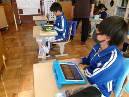 豊田市の土地利用の移り変わりについて、学習用タブレットを使ってまとめました。