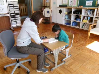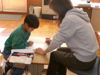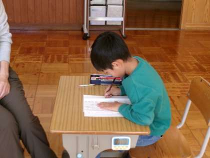 書き初めの練習をしました。手本をよく見て、丁寧に字を書いていきました。