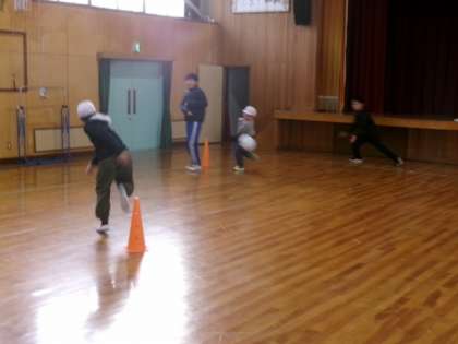 集会室でドッジボールをしました。