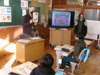 学校の中の様々な場所を英語で言いました。ALTが言う英語を繰り返し練習しました。