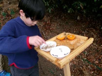 野鳥観察のため、えさ台のえさを変えました。