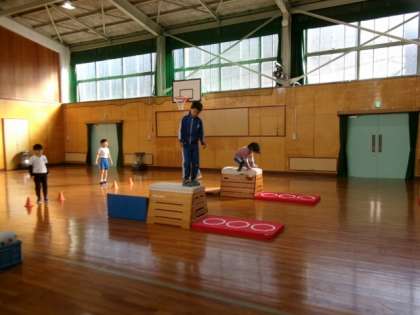 跳び箱を跳び越えました。いろいろな跳び越え方に挑戦しました。