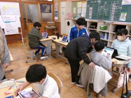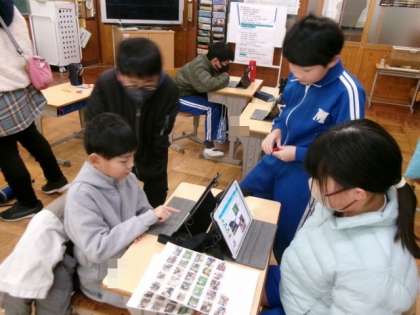 円山学習発表会に向けて、学習用タブレットを活用しながら発表資料を作りました。