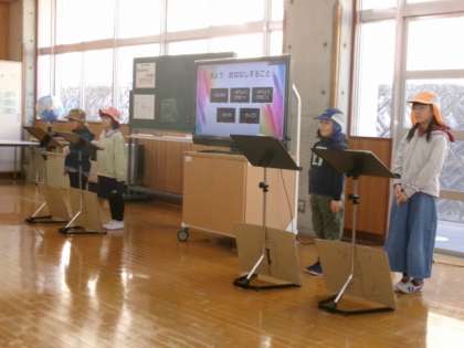 0210 円山学習発表会 低学年 公開日 2024/02/10 更新日 2024/02/10 学校の特色ある活動 みくらのみりょくはっけんたい 1・2年生が住んでいない地区を中心に「みくらのすてきさん」を訪ね、お茶体験やピザ作り体験をさせていただいたこと、子どもたちが抱いた御蔵の魅力を元気いっぱい発表しました。