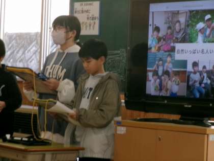 0210 円山学習発表会 高学年 公開日 2024/02/10 更新日 2024/02/10 学校の特色ある活動 御蔵を未来に残し隊 開校150年を迎えた御蔵小学校が、どんなあゆみで今日を迎えたのかを知りたいと思い活動を始めました。150周年の式典で発表した後、200周年を迎えるために自慢の御蔵小を未来につなげようと自分たちにできることを考えたり、活動したりしたことを発表しました。