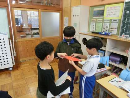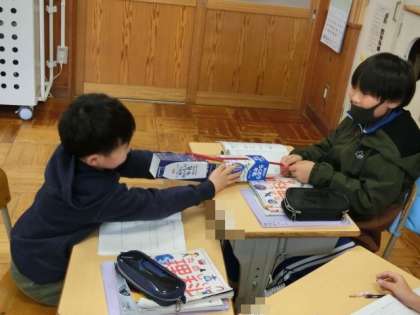 腕を曲げたり伸ばしたりしたときの筋肉の動きを実験器具を使って確かめました。