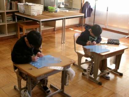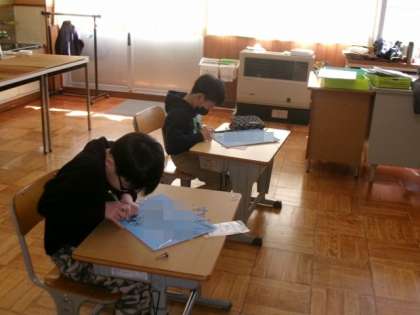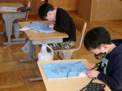 鳥をテーマにした版画を制作中です。ていねいに彫刻刀で彫っていきました。