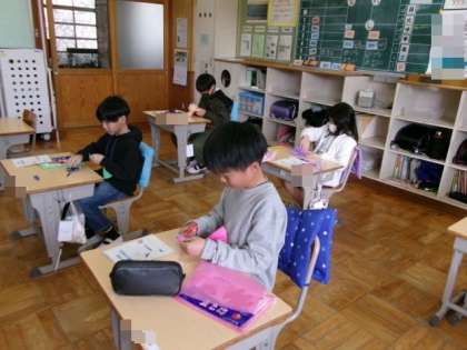 6年生を送る会や卒業式で使う花を作りました。一つ一つ丁寧に作りました。