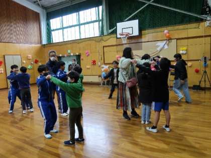 0305 6年生を送る会1 公開日 2024/03/05 更新日 2024/03/05 学校の特色ある活動 6年生を送る会を行いました。卒業を間近にひかえた6年生のために、全校で様々な企画を考えました。楽しいゲーム、6年生を主役にしたダンス、懐かしの映像、プレゼント。6年生も笑顔で参加。そして、最後には涙あり。6年生にとって、そして1〜5年生にとっても思い出に残る会になりました。