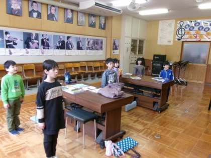 卒業式で歌う歌の練習をしました。校歌も元気に歌いました。