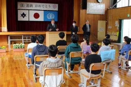 0404 就任式・始業式 公開日 2024/04/04 更新日 2024/04/04 学校行事 令和6年度がスタートしました。全校児童12名が元気に登校しました。 新たに3名の先生を迎え、就任式を行いました。その後、始業式を行いました。