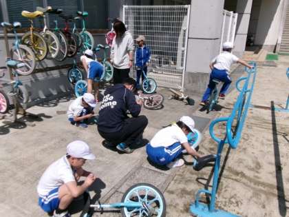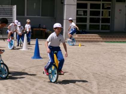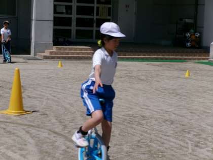 新たに自分の使う一輪車を決め、さっそく新しい一輪車で練習を行いました。