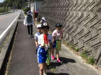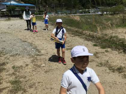 学校周辺の見学をしました。どんなものがあるかメモしながら歩きました。