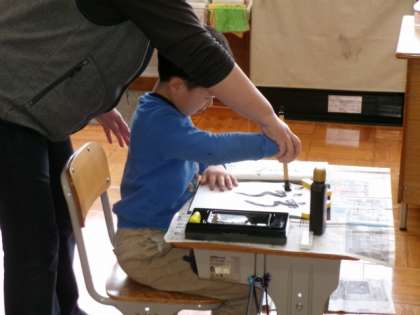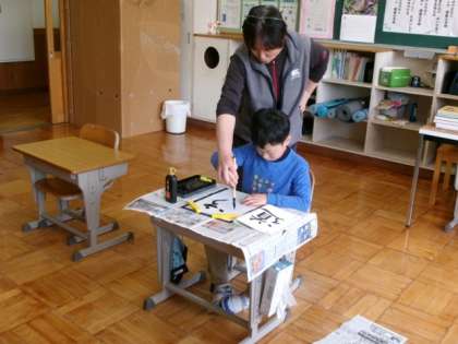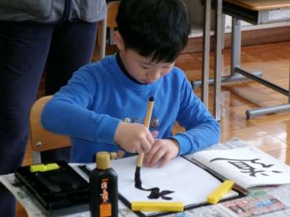しんにょうの練習をしました。筆の持ち方、動かし方を何度も練習しました。