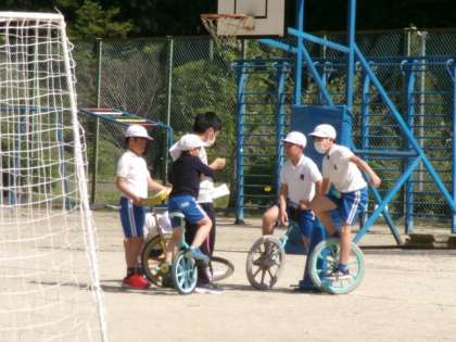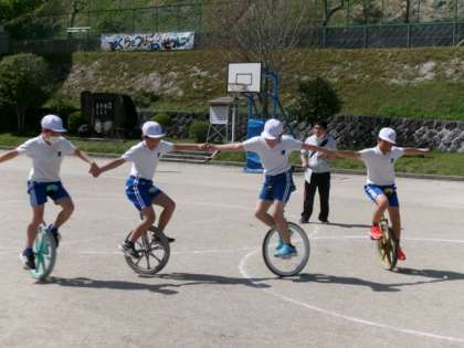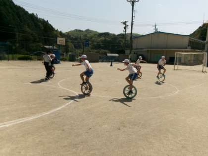 運動会に向けて、一輪車の練習をしました。難しい技にも挑戦しました。