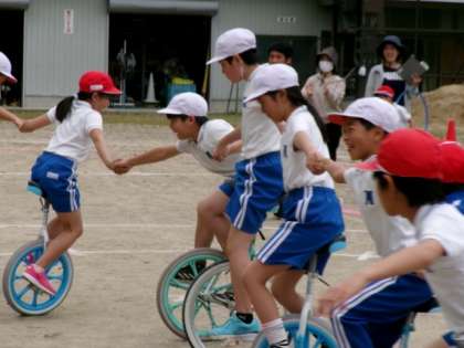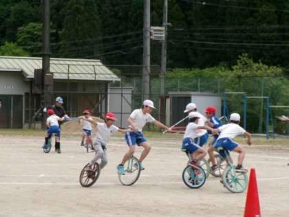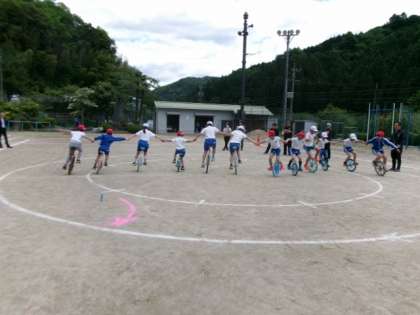 一輪車演技の練習の様子です。みんなが心ひとつにして、大車輪に挑戦しました。