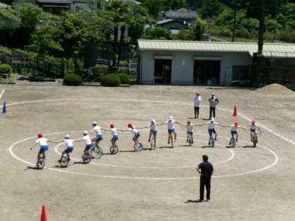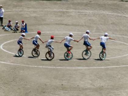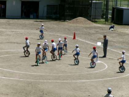 一輪車演技の練習をしました。グラウンドの状態がよくなかったですが、みんな精一杯練習に励みました。