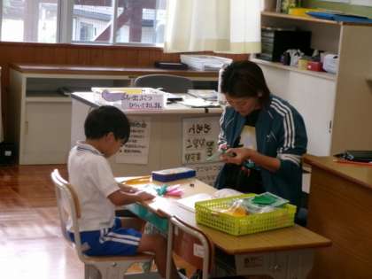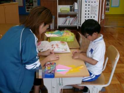 家の人へのプレゼントとして、花を折り紙で作りました。本を見ながら、ていねいに折りました。