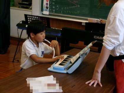 鍵盤ハーモニカの練習をしました。楽譜どおり正しく弾けるようになってきました。