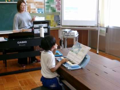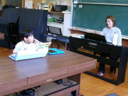 鍵盤ハーモニカの練習をしました。ピアノの伴奏に合わせて練習しました。