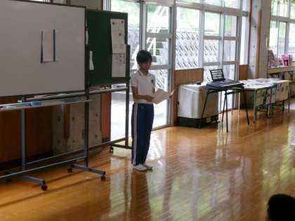 0711 スピーチ集会 公開日 2024/07/11 更新日 2024/07/11 学校の特色ある活動 第4回目のスピーチ集会でした。2名の児童がそれぞれ自分の好きなこと、おとなになったらやってみたいことをスピーチしました。その後、スピーチの内容について、みんなで感想や意見を出し合いました。