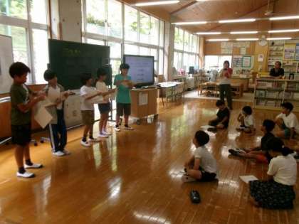 0711 図書集会 公開日 2024/07/11 更新日 2024/07/11 特別活動 図書・放送委員会が計画した図書集会を行いました。3つの問題が出され、その答えが載っている本を探し出し、回答するゲームです。みんな、グループで協力して、楽しくゲームに参加していました。