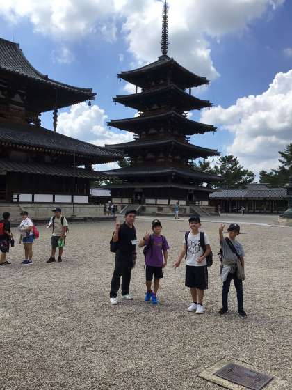 一つ目の見学地 法隆寺です。五重塔、金堂、講堂など見学しました。