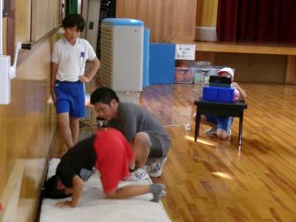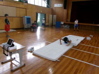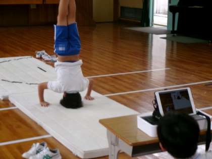0927 5・6年生 ひまわり学級 体育 公開日 2024/09/27 更新日 2024/09/27 各学年から マット運動をしました。自分の技を学習用タブレットで録画し、動画を見ながら自分の技の改善点を探りました。
