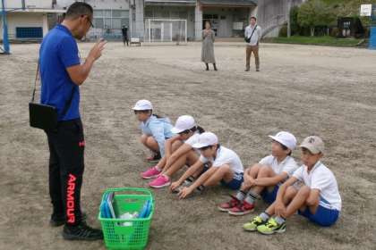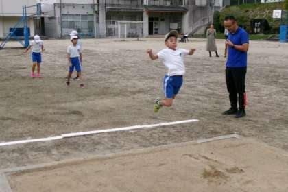 走り幅跳びを学習しました。3歩でリズムよく跳ぶ練習をしました。