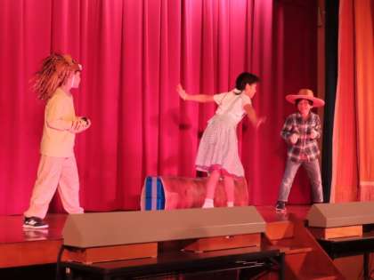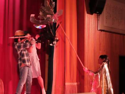 3・4年生の劇の様子です。オズの魔法使いを演じました。