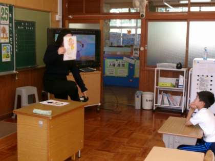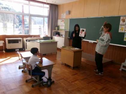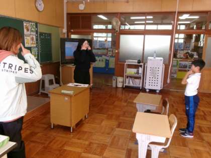 歌を歌ったり、体を動かしたりしながら、体の部分や色の英単語の練習をしました。