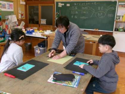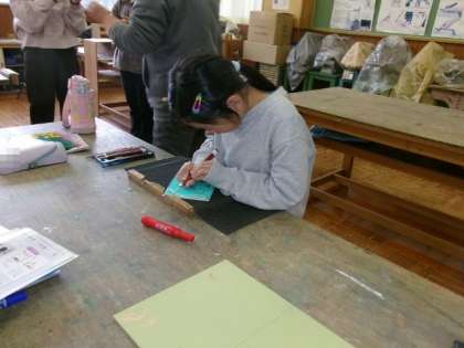 彫刻刀の持ち方や注意する点など、使い方について学習しました。