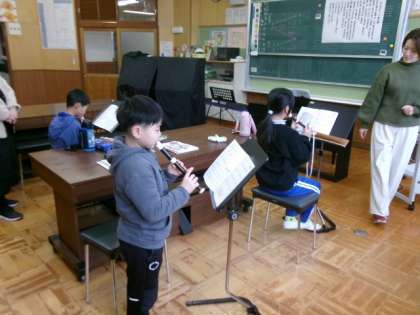 「せいじゃのこうしん」をリコーダー練習しました。タンギングに気を付けて、演奏することができました。