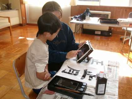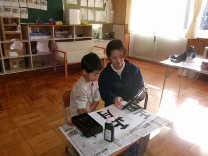 書いている様子を動画に撮り、自分で書き方を振り返りました。