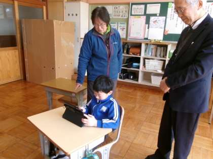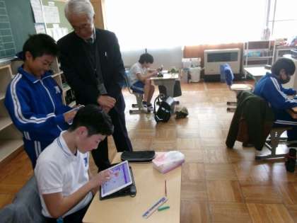 ICT支援員とともに学習用タブレットを使った授業を行いました。プログラミングについて教えていただきました。