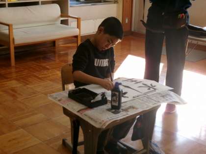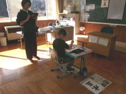 書いている様子を撮影して、書き方を振り返りました。