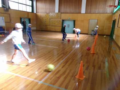 サッカーの練習をしました。パスの練習をしたり、ミニゲームをしたりしました。