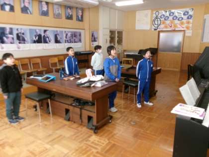 卒業式の歌の練習をしました。卒業生への思いを込めて、精一杯声を出していました