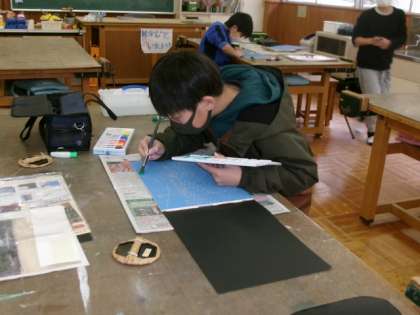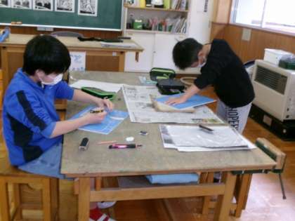 版画に取り組みました。彫り間違いのないよう、集中して彫りました。