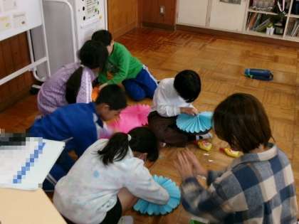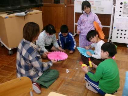 6年生を送る会で使う飾りを作りました。