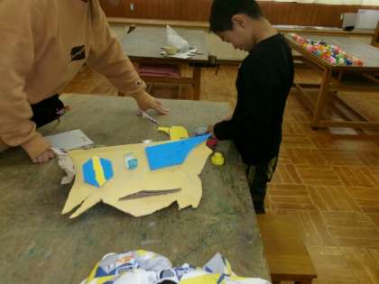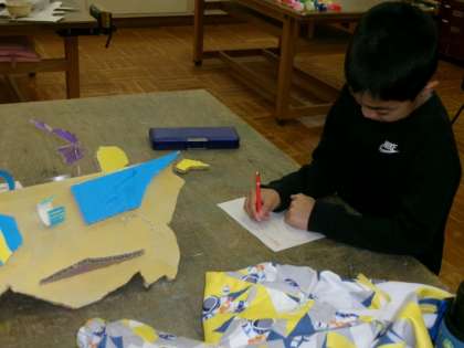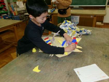 お面を作りました。大きなお面ができました。