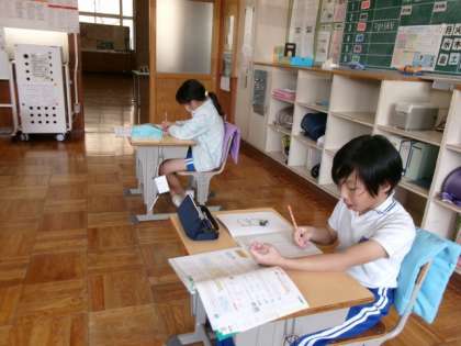 3年生は、そろばんを学習しました。4年生は、練習問題にチャレンジました。