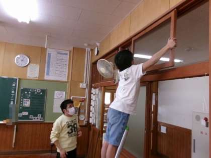 年度末の大掃除を行いました。教室にある物をすべて出し、床をきれいにしました。