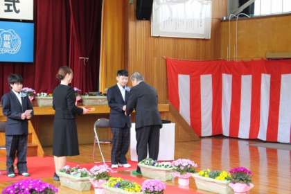 来賓の方から卒業記念品を渡していただきました。