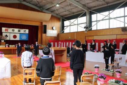 在校生から卒業生へ、卒業生から在校生へ別れのことばを伝え合いました。そして、全校で歌を歌いました。