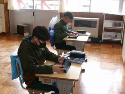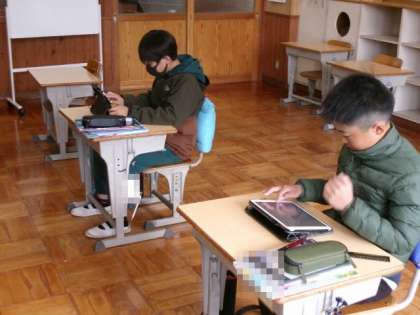 学習用タブレットで、5年生の算数のまとめの問題に挑戦しました。