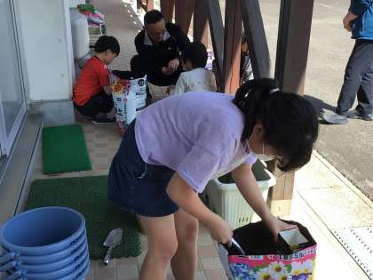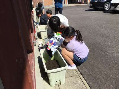 授業の様子4 公開日 2025/04/14 更新日 2025/04/14 各学年から 5・6年生とひまわり学級は理科の授業で、ホウセンカの種とジャガイモの種イモを植えました。ホウセンカは牛乳パックの空き箱を使い、ジャガイモはプランターで育てます。芽が出てくることが楽しみです。