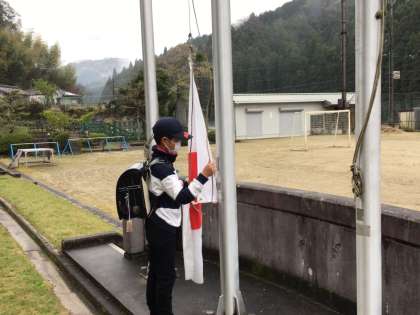 毎日、国旗を掲揚しています。今日は朝から雨が降っていたので、掲揚することを迷いましたがきっと雨は上がるだろうと・・・願いも込め、掲揚しました。