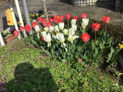4月17日(木)登校の様子 公開日 2025/04/17 更新日 2025/04/17 各学年から おはようございます。今日は、太陽の日差しが強く感じられる朝の始まりです。体育館脇にある桜の木も花が散り葉桜になりました。正門前のチューリップは花びらが大きく開いています。初夏のような空気です。